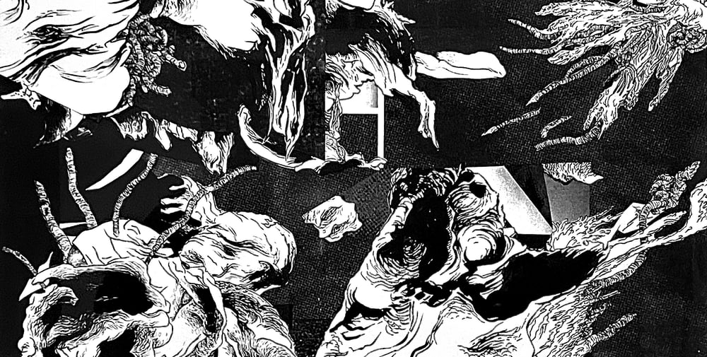 Original collage by A. Turner from the Old Man Gloom album "NO". Collaged paper and glue on archival paper, 17" x 9" (2012). Matted in high quality frame - framed dimensions: 23" x 15".