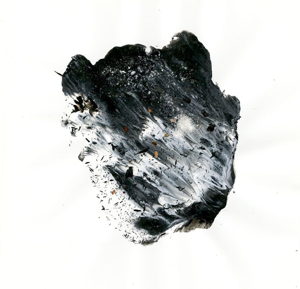 mono-print painting made with ashes, charcoal, flowers, gesso and ink 12x12 signed, will ship a day after purchase.